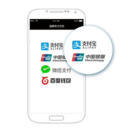 荷花支付,为iOS/Android原生/H5 App提供支付解决方案:支持微信支付、支付宝支付、银联手机支付、百度钱包等。